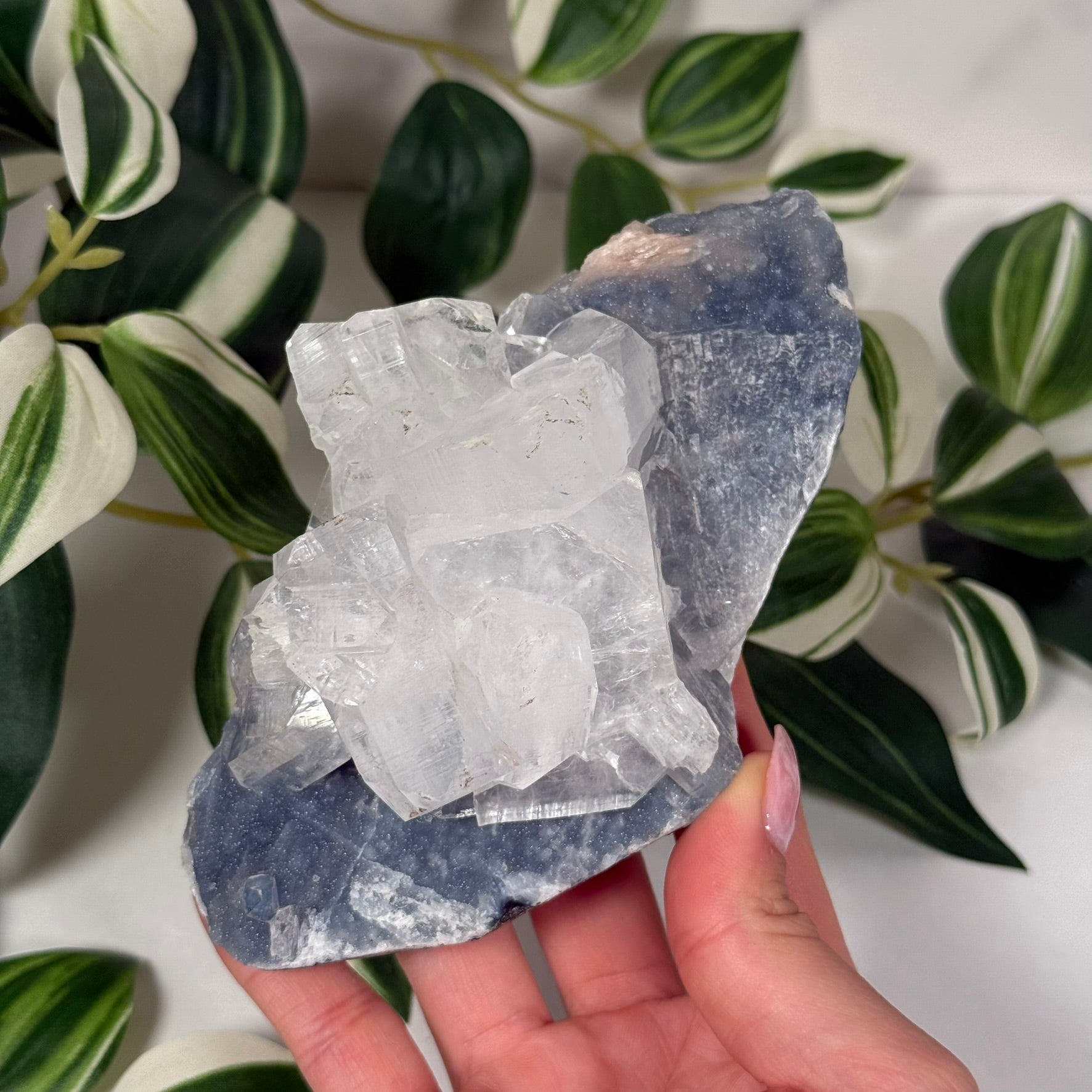 Apophyllite on blue chalcedony 115