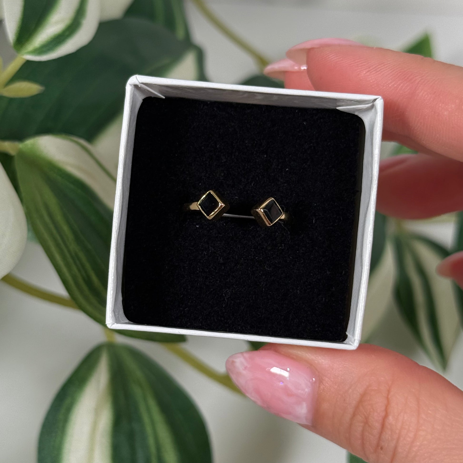 Gold plated black onyx stacking ring (Sizes 6, 7, 8)