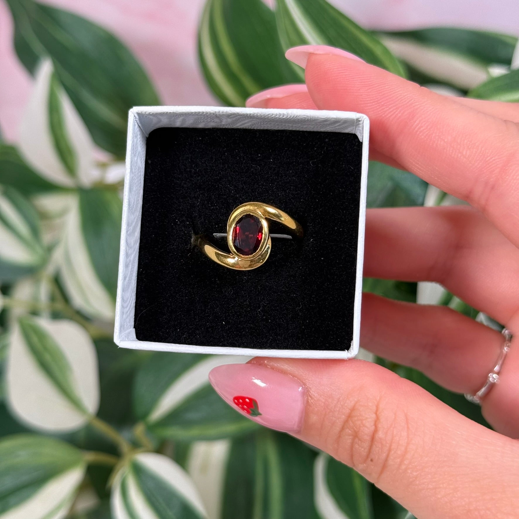 Gold plated garnet ring (sizes 5, 6, 7, 8, 9)