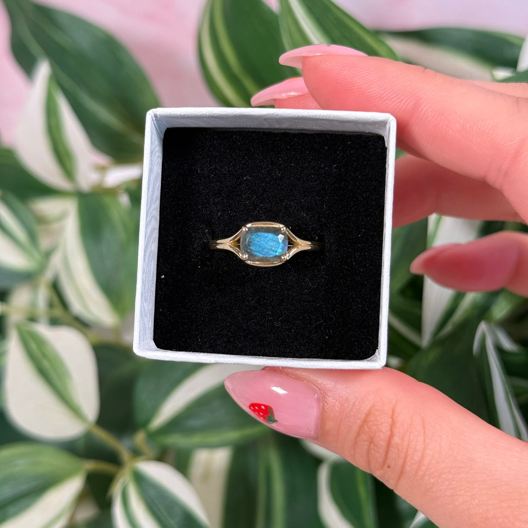 Gold plated labradorite ring (sizes 6, 7, 8, 9)