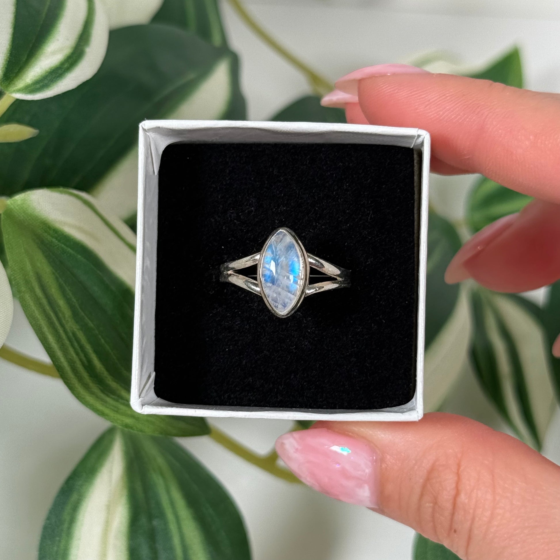 Rainbow moonstone marquise ring (Sizes 7, 8, 9)